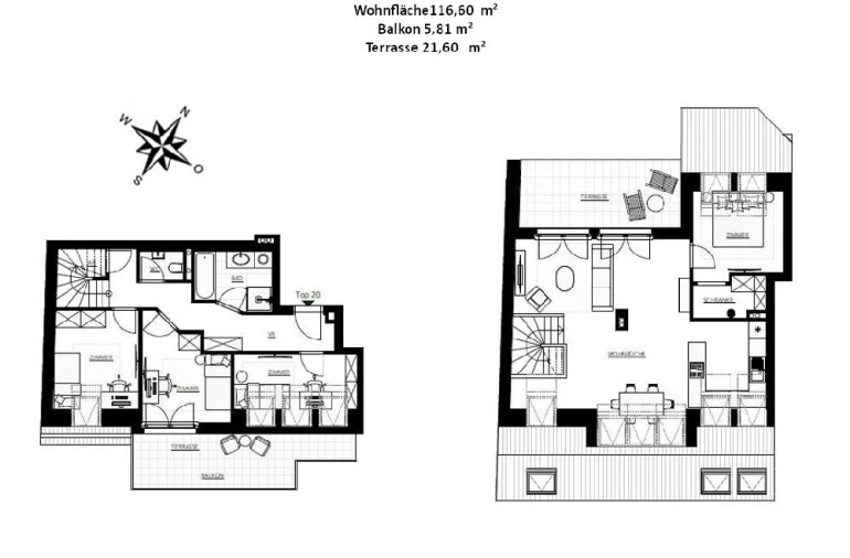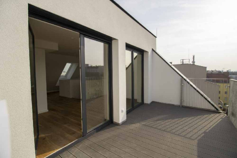 Je nach Wohnung stehen Balkone und/oder Terrassen mit Holzrosten und blickdichten Trennwänden zur Verfügung. Die Außenanlagen sind begrünt und mit einer ansprechenden Wegeführung sowie Beleuchtung ausgestattet.