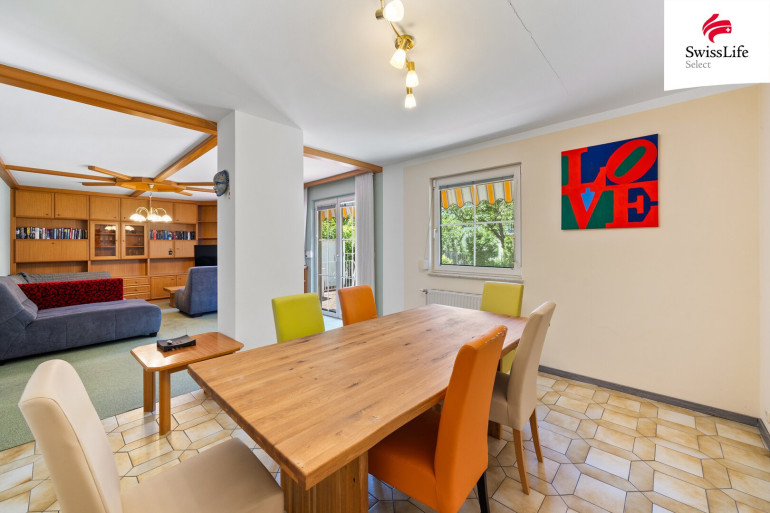 - Wohn-Esszimmer mit direktem Zugang zur Terrasse und in den Garten