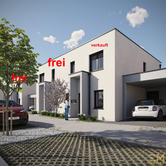 - Der Eingangsbereich, die Abtrennung zwischen den Terrassen, der Abstellraum beim Carport und das Carport werden in Beton ausgeführt.