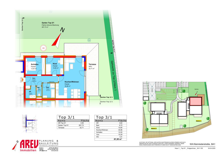 Details zur sonnigen Gartenwohnung - Top 3/1: