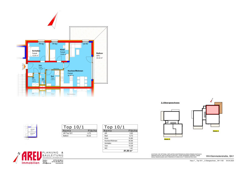 - Raumaufteilung: Vorraum, Bad, WC, Abstellraum, Wohn-/Koch-/Essbereich, Schlafzimmer, Kinderzimmer