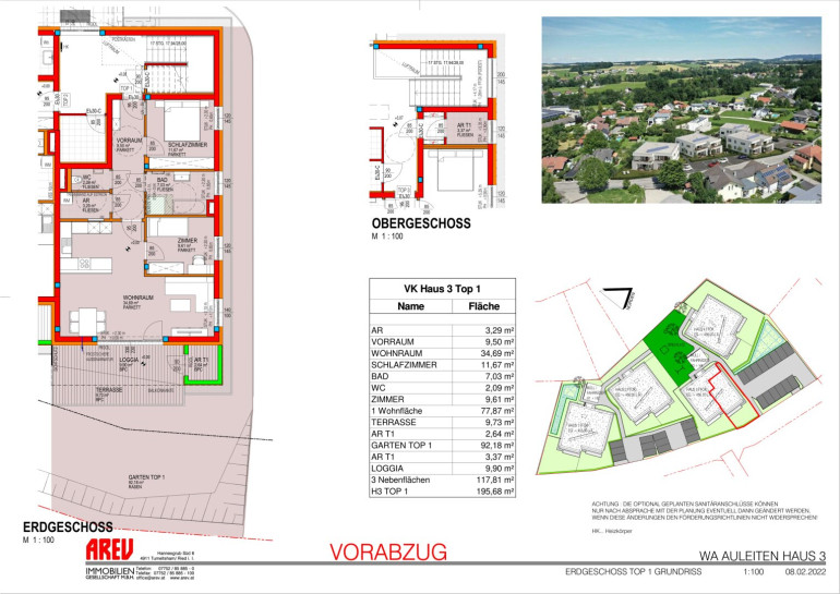 Raumaufteilung: Vorraum, Bad, WC, Abstellraum, Wohnraum/Essen/Kochen, Schlafzimmer, Zimmer