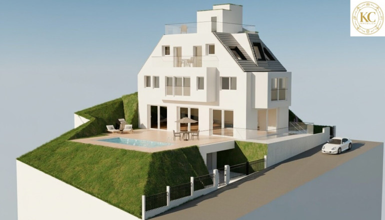 Diese Villa ist ein wahres Paradies in ruhiger, idyllischer Lage – perfekt für die ganze Familie. Auf vier Etagen haben Sie die Möglichkeit, Ihren Traum vom Wohnen zu verwirklichen. Von der Dachterrasse aus genießen Sie einen spektakulären Ausblick. Das großzügige Kellergeschoss mit Lichtschacht lässt sich ideal als Wellness- oder Fitnessbereich mit exklusivem Weinkeller gestalten. Die Garage bietet Platz für vier Fahrzeuge, und alle Ebenen – von der Garage bis zur Dachterrasse – sind bequem mit einem Aufzug verbunden.