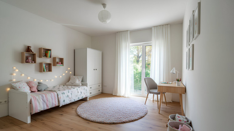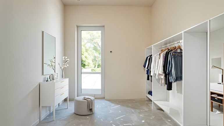 Das Obergeschoss vermittelt durch die offene Gestaltung und den Galerie-Charakter ein luftiges Raumgefühl. Hier befinden sich zwei Schlafzimmer, ein Badezimmer mit Dusche und WC sowie der Masterbedroom: bestehend aus großem Schlafbereich, eigener Ankleide und einem privaten Badezimmer mit Badewanne. Alle Zimmer des Obergeschosses verfügen über direkten Zugang zum Balkon.