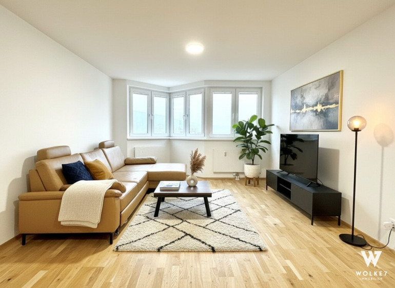 inklusive hochwertiger Möblierung (Couch, Boxspringbett, TV-Wand)