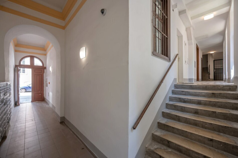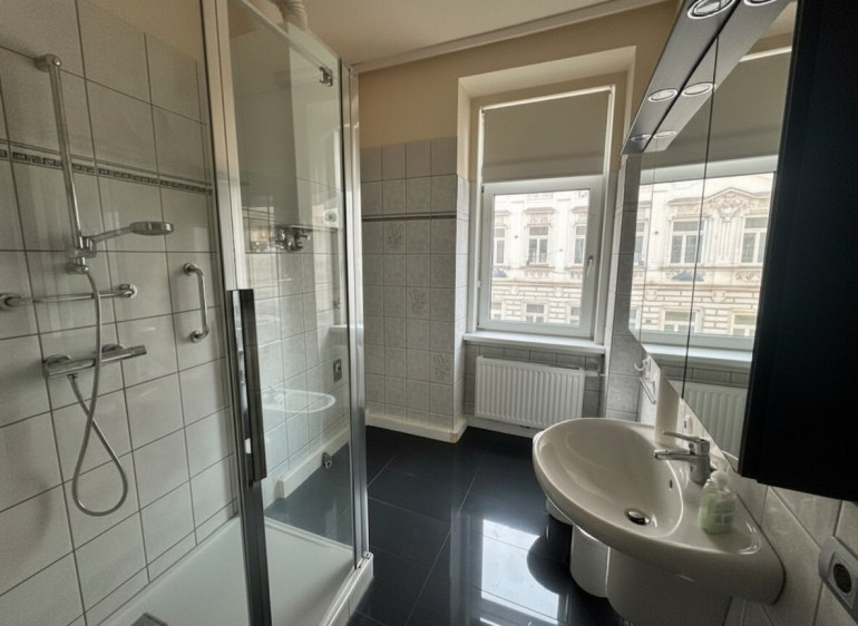 Die Wohnung befindet sich im ersten Stock eines Altbaus und besticht durch eine interessante Raumaufteilung. Die moderne Einbauküche ist nicht nur funktional, sondern auch ein echter Blickfang, die das Kochen zum Vergnügen macht. Das Badezimmer mit Fenster sorgt für eine angenehme Atmosphäre und verfügt über eine große Dusche, die Ihnen den idealen Start in den Tag ermöglicht.