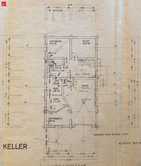 Im Keller befinden sich neben der Garage weitere 4 Räume, ein WC und eine Dusche.