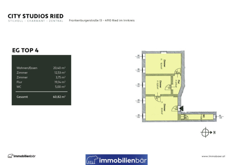 Wohnung Top 4, 1. OG (ohne Lift) - ca. 60,82m² Wohnfläche - 3 Zimmer