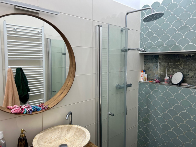 Die moderne Einbauküche ist sowohl funktional als auch stilvoll gestaltet und bietet ausreichend Platz für kulinarische Kreationen. Darüber hinaus stehen Ihnen zwei Badezimmer zur Verfügung: eines mit Badewanne und WC sowie ein weiteres mit Dusche und WC, was zusätzlichen Komfort für die gesamte Familie garantiert.