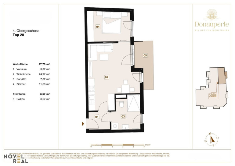 Das Vermittlungshonorar ist ausschließlich bei Zustandekommen eines gültigen Rechtsgeschäfts fällig und vom Käufer an Novel Real Immobilien GmbH zu zahlen. Es wird ausdrücklich auf die Nebenkostenübersicht hingewiesen. Bei den Visualisierungen und Abbildungen der Immobilie (insbesondere von Inneneinrichtungen) kann es sich um Symbolfotos bzw. fototechnisch optimierte Fotos handeln.