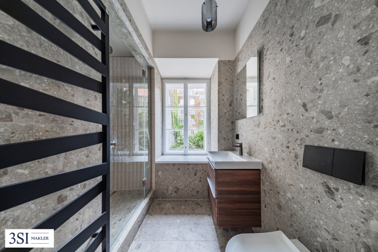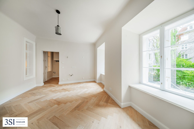 Das Objekt ist ein Erstbezug nach Generalsanierung. Die Gas- und Stromleitungen wurden erneuert, ein eleganter Eichenparkettboden mit Fußbodenheizung verlegt und zeitgemäße Sanitäranlagen installiert. Die charmanten Holzkastenfenster konnten erhalten werden und wurden tischlermäßig saniert.