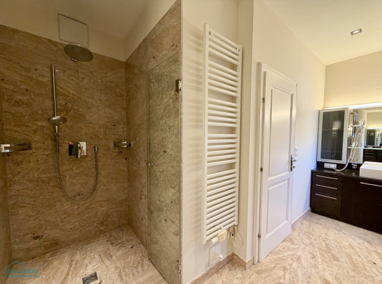 Vorraum mit direktem Liftzugang in die Wohnung, großer Wohn- und Essbereich mit Ausgang auf eine schöne Terrasse mit Blick auf die Grinzinger Kirche, vollausgestattete Tischlerküche mit zahlreichen Einbauschränken, Masterbedroom mit en-suite Marmorbad, großer begehbarer Home Office /Garderobenbereich mit Blick in den schönen Innenhof, ein weiteres Schlafzimmer mit en-suite Duschbad, 2 Abstellräume, Gäste WC.