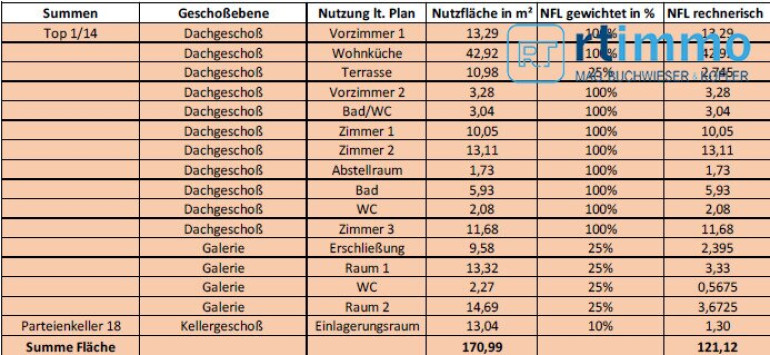 Diese Dachgeschosswohnung hat eine gewichtete Wohnfläche von 121 m2 (gesamte Nutz-/Bodenfläche in Galerie und unter Dachschrägen: 171 m2) und bietet Ihnen folgende Raumaufteilung: