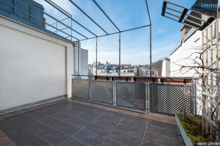 Diese beeindruckende Dachgeschosswohnung in einem stilvollen Gründerzeithaus aus 1884 vereint historischen Charme mit modernem Wohnkomfort. Der Dachausbau wurde 2017 durchgeführt, wodurch die Wohnung fast in neuwertigem Zustand ist. Die nordwestliche Ausrichtung sorgt für eine helle, angenehme Wohnatmosphäre, während die Terrasse auf Wohnebene einen schönen Weitblick bietet.