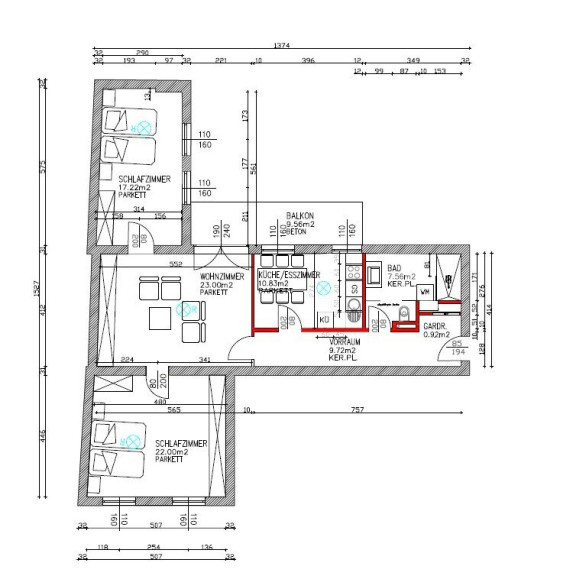 monatliche MIETE: € 1.90,94 inkl. Betriebskosten und USt.