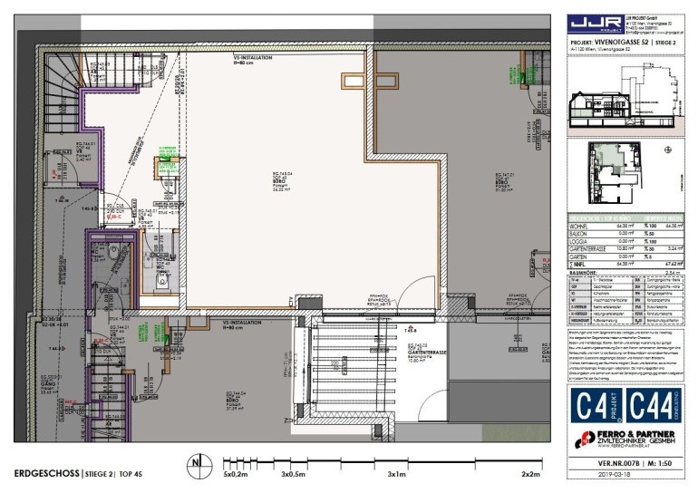 Die Zusammenlegung mit dem Nachbarbüro Top 47 mit rund 35 m² wäre ebenfalls möglich, um somit ein großes Büro wie in der Visualisierung ersichtlich zu ermöglichen.