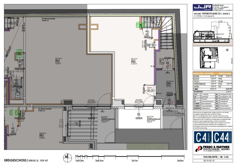 Die Zusammenlegung mit dem Nachbarbüro Top 45 mit rund 64 m² wäre ebenfalls möglich, um somit ein großes Büro wie in der Visualisierung ersichtlich zu ermöglichen.