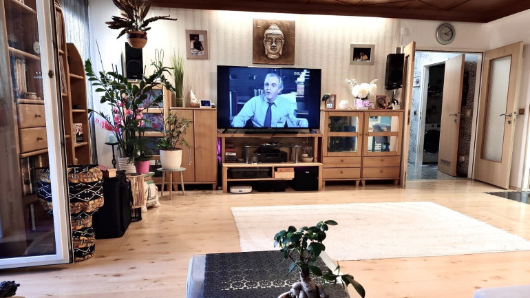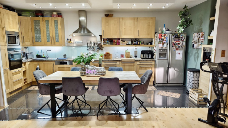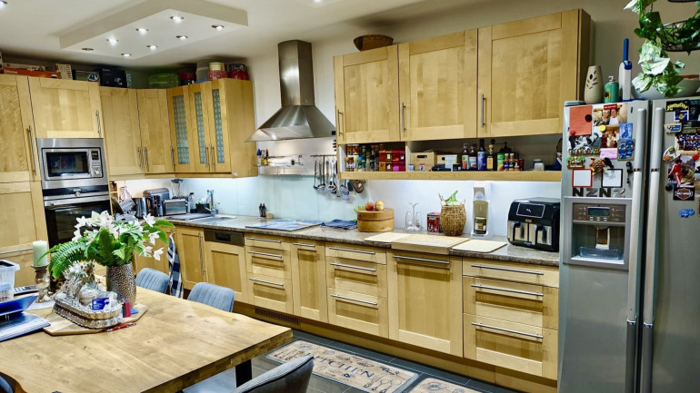 • 51 m² XXL-Wohnzimmer mit offener Küche (Siemens/AEG-Geräte, Einbaukaffeemaschine)