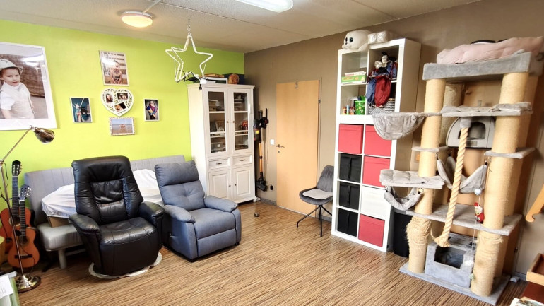 Aktuell verfügt die Wohnung über 3 Zimmer – ein Schlafzimmer, ein großes Kinder-/Arbeitszimmer und der weitläufige Wohn-/Essbereich.