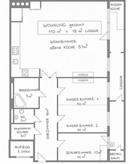 • 110 m² Wohnfläche + 18 m² Loggia – großzügig und lichtdurchflutet