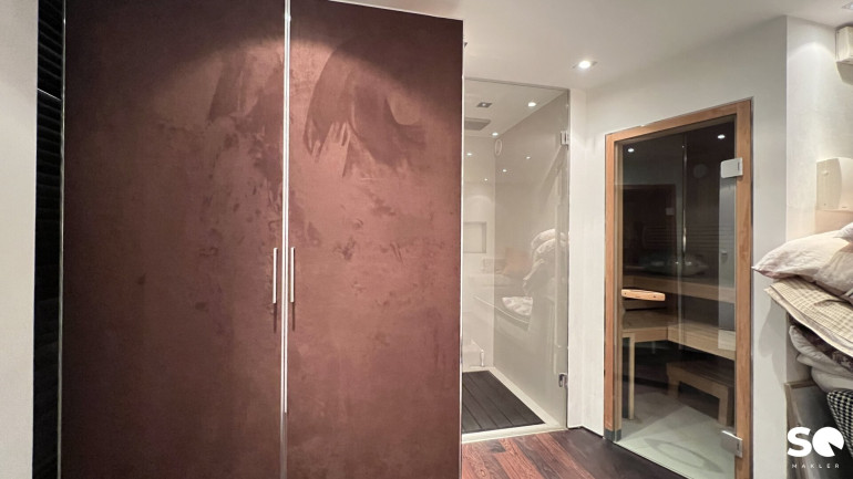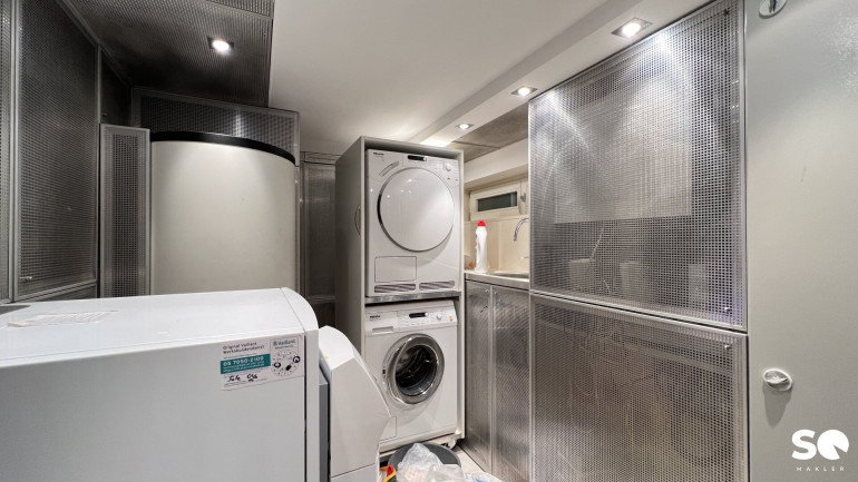 Im Kellergeschoss befinden sich praktische Räumlichkeiten wie eine Garage für zwei Fahrzeuge, ein Hauswirtschaftsraum, ein Abstellraum sowie ein gemütlicher Weinkeller. Ein Gästezimmer mit Dusche und WC sowie eine Sauna runden das Angebot ab.