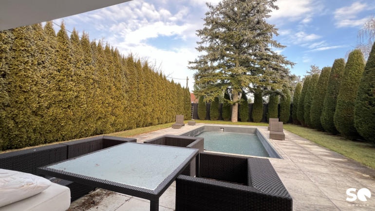 - Garten: Eben, uneinsehbar durch Hecke und Mauer, Pool vorhanden
