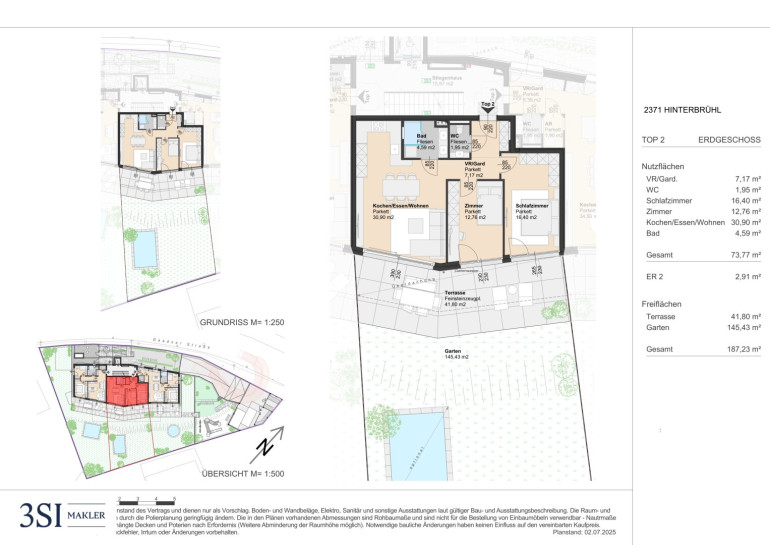 Gesamt Freifläche: rund 187 m² pures Outdoor-Leben. Diese Gartenwohnung vereint die Großzügigkeit eines Eigenheims mit dem Komfort eines modernen Neubaus – ideal für Paare, Familien oder alle, die Wert auf Qualität, Ruhe und viel Platz im Freien legen.