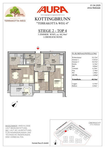 Wir bieten gut durchdachte 2- bis 4-Zimmerwohnungen, die perfekt auf die Bedürfnisse von jungen Paaren, wachsenden Familien sowie Senioren zugeschnitten sind – "Am Terrakotta Weg" finden Sie Ihren idealen Lebensraum, der Ansprüchen modernen Wohnens gerecht wird. Die Wohnungen, welche in hochwertiger Ziegelmassivbauweise errichtet werden, vereinen Lebensqualität, Energieeffizienz und Gemeinschaft in einer idyllischen und sicheren Umgebung.