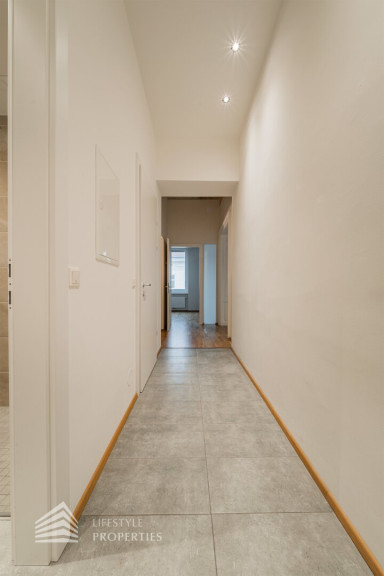 Die Wohnung befindet sich im 2. Stockwerk eines fünfstöckigen Gebäudes aus dem Jahr 1888, welches erst kürzlich komplett saniert wurde. Es liegt besonders zentral, nahe der Altstadt von Krems und doch sind Sie innerhalb von 10 Minuten an der Donau. Die Wohnung ist bequem über einen Lift erreichbar. Die Wohnfläche von ca. 56 m² teilt sich in eine großzügige Wohnküche, ein Schlafzimmer, einen Vorraum, ein Badezimmer sowie in ein separates WC auf. Die Küche ist mit den modernsten Küchengeräten ausgestattet und lässt somit keine Wünsche offen. Die Böden der Zimmer sind mit einem wunderschönen Parkett ausgekleidet, die Nassräume verfügen über stilvolle Steinfliesen. Das Kellerabteil sorgen für ausreichend Stauraum. Beheizt wird die Wohnung mittels Gasetagenheizung.