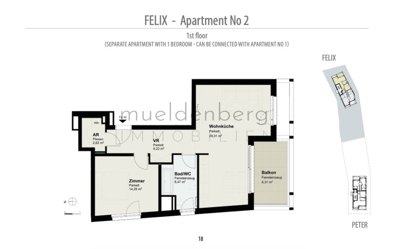 Ein Garagenplatz kann optional für € 42.000,- erworben werden.