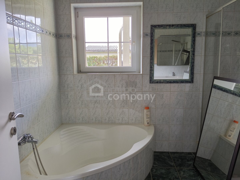 Weiters stehen Ihnen im Erdgeschoss ein großzügiges Badezimmer, mit Wanne und extra Dusche, das WC und ein zusätzlicher ca. 10,5m² großer Raum, welcher als Schlafzimmer genützt wird, zur Verfügung.