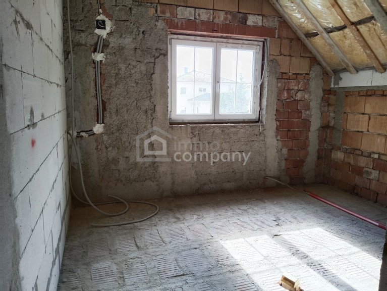 Bereits 1960 erbaut, wurden 2005 neue Pläne erstellt und das Haus komplett umgestaltet und saniert. Das Erdgeschoss ist bezugsfertig, die Mansarden befinden sich aber noch im Rohbau. Alle Leitungen wurden bereits verlegt und mit der Dämmung wurde auch schon begonnen.
