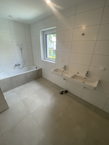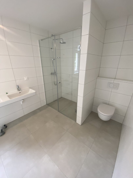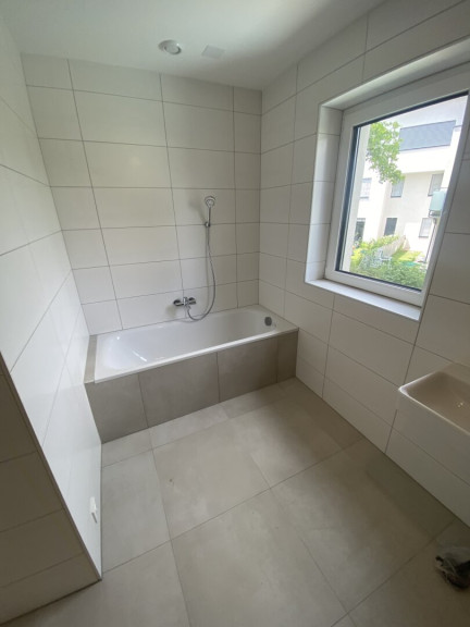 - Bad mit Badewanne, Dusche und WC, Waschmaschinenanschluss, Fenster, zeitlose Verfliesung