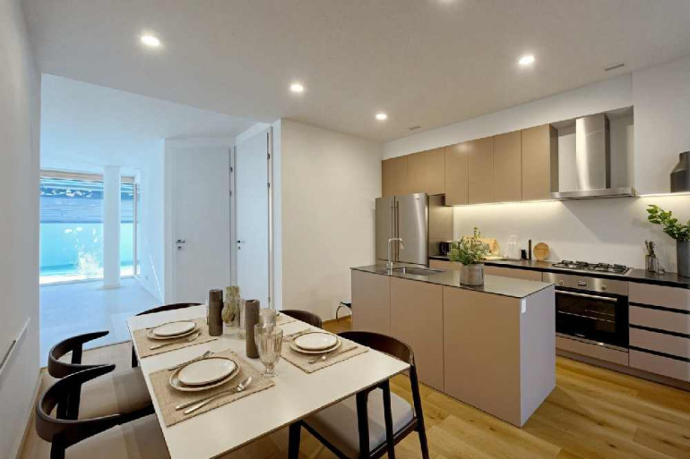 - moderne Küche, harmonisch in einer Nische integriert