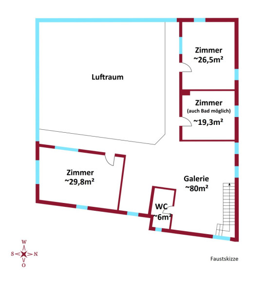 - 3 geräumige Zimmer, davon könnte eines aufgrund der vorhandenen Anschlüsse zu einem Bad umgebaut werden