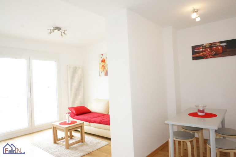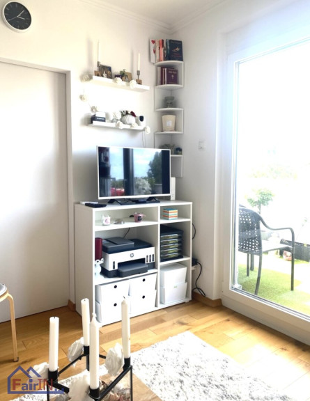 Einbauschrank für genügend Stauraum. Die Terrasse ist begehbar vom Wohnzimmer, wie auch vom Schlafzimmer.