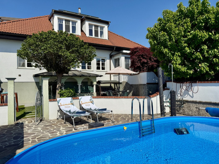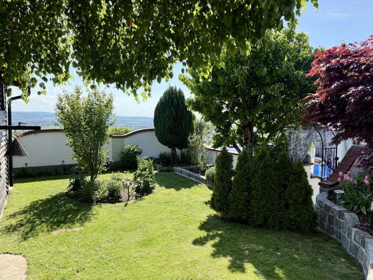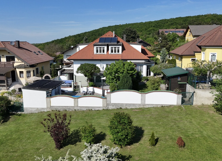 Am höchsten Punkt von Hof am Leithaberge, direkt am begehrten Gipfelberg, gelangt ein echtes Wohnjuwel zum Verkauf – ein architektonisch herausragendes Großfamilienhaus, das auch als Zweifamilienhaus genutzt werden kann und mit stilvoller Eleganz, spektakulärem Panoramablick und liebevoll gepflegter Ausstattung begeistert. In dieser exklusiven Höhenlage vereinen sich Natur, Ruhe und Luxus zu einem Lebensgefühl, das man sonst nur aus den Hollywood Hills kennt – mit Blick auf den Schneeberg, das Wiener Becken und einem Gartenparadies, das keine Wünsche offenlässt.
