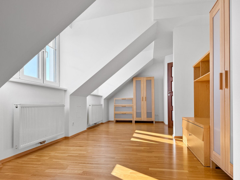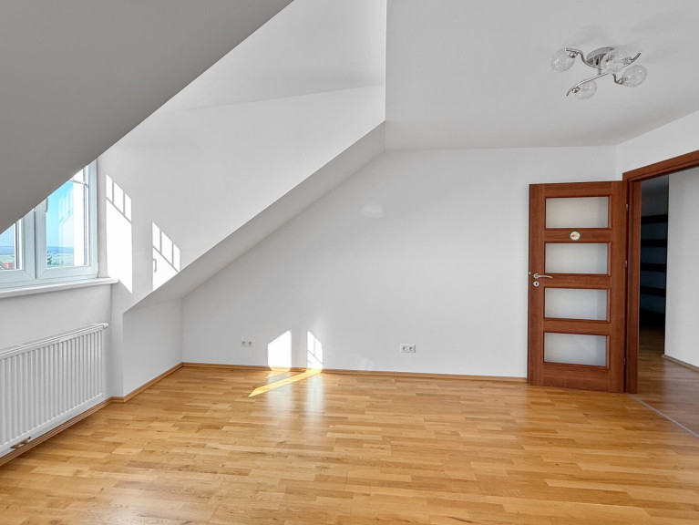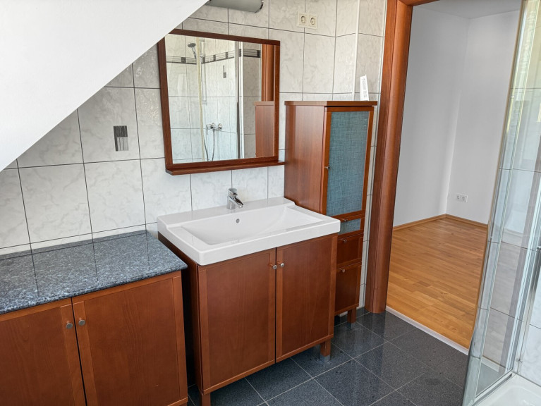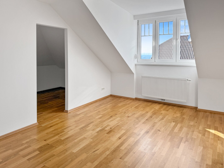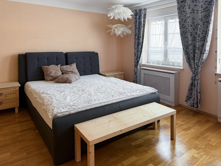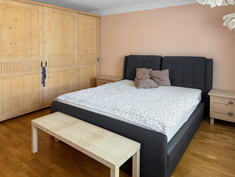Über den Treppenaufgang gelangen Sie ins Obergeschoss, wo sich weitere Rückzugsräume eröffnen. Vier helle Zimmer, zwei davon mit begehbaren Kleiderschränken, bieten Platz für Familie, Gäste oder Homeoffice. Der großzügige Vorraum schafft eine angenehme Wohnatmosphäre. Das zweite Badezimmer ist mit Dusche, WC und Waschbecken ausgestattet – ideal für eine zweite Wohneinheit oder größere Familien. Durch die charmanten Dachschrägen entsteht ein besonderes Flair, das mit viel Tageslicht durchflutet wird. Ein weiterer Höhepunkt: Der fantastische Ausblick aus dem Obergeschoss auf die umliegende Landschaft.