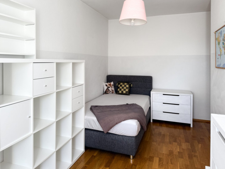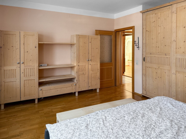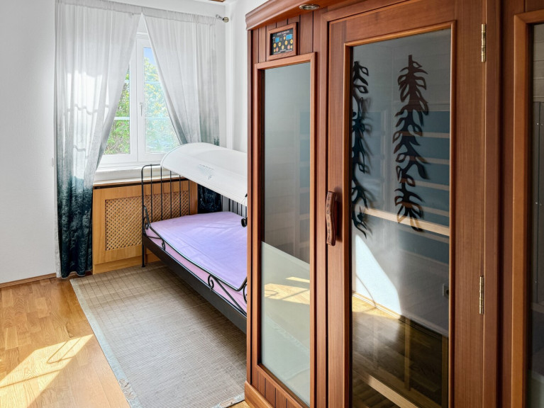 Drei weitere Zimmer im Erdgeschoss bieten vielfältige Nutzungsmöglichkeiten. Zwei davon dienen derzeit als Schlafzimmer, eines wurde in eine kleine private Wellnessoase verwandelt – mit Infrarotkabine und Solarium, ein Rückzugsort für Körper, Geist und Seele.