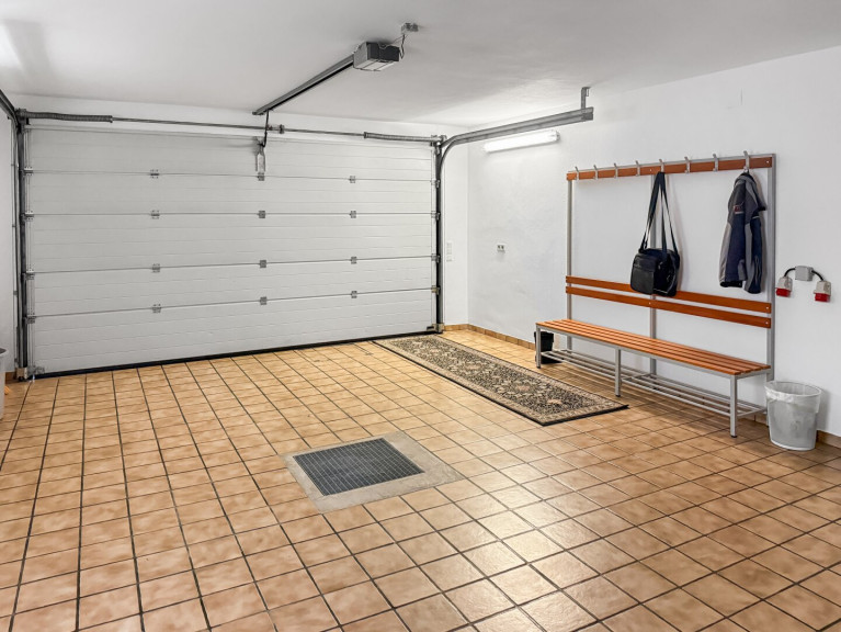 Mit insgesamt 206 m² ist der Keller nicht nur funktional, sondern auch stilvoll mit modernen Fliesen gestaltet. Zwei großzügige Doppelgaragen mit elektrischen Toren bieten Platz für vier Fahrzeuge. Vor einer Garage befindet sich zusätzlich eine überdachte Einfahrt für ein weiteres KFZ. Auch straßenseitig gibt es zusätzliche Parkmöglichkeiten – perfekt für Gäste oder größere Familien.