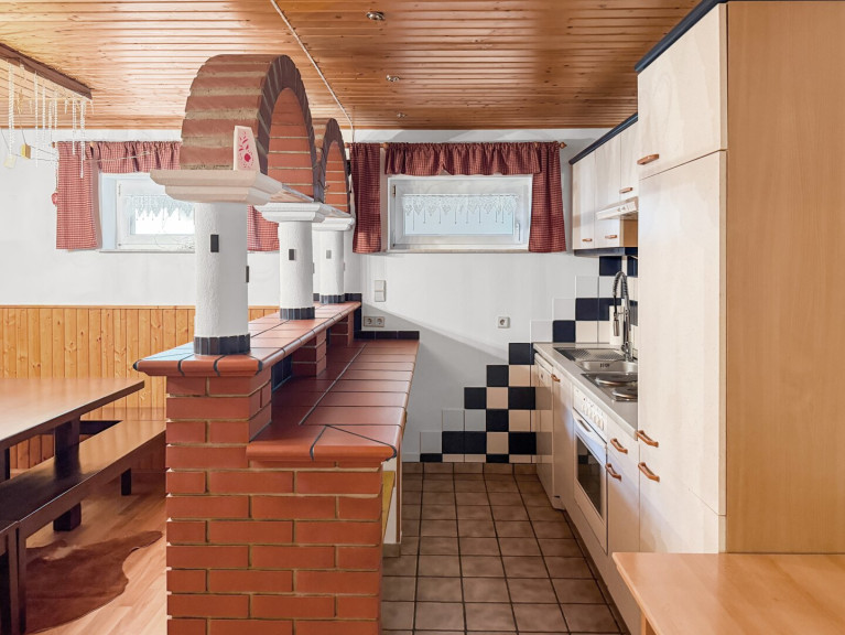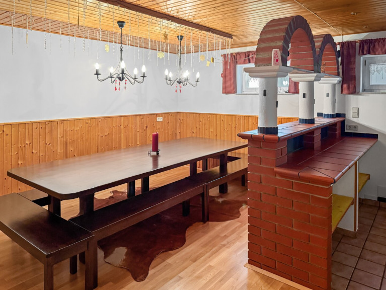 Der Keller verfügt über zahlreiche Lagerflächen, einen Waschraum, eine kleine Werkstatt und ein charmantes Kellerstüberl mit eigener Bar – ein gemütlicher Ort für Feste, Feiern oder gesellige Abende mit Freunden. Ein weiteres WC mit Duschbadewanne ist ebenfalls vorhanden.