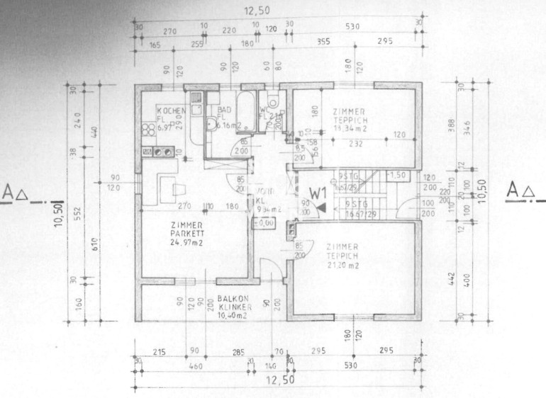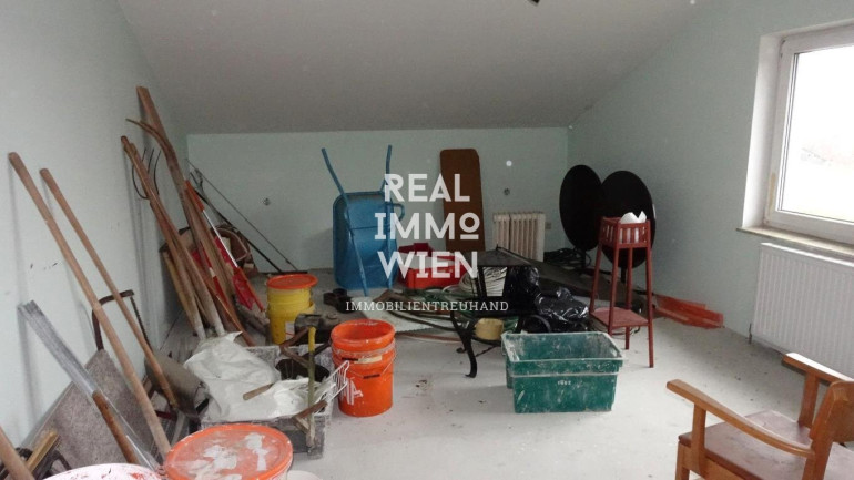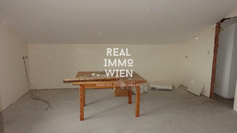 • Dachgeschoss: Drei Zimmer, Wohnküche, Bad, WC, Abstellraum, Balkon – es fehlen Zargen und Innentüren, diverse Ausbauarbeiten erforderlich.