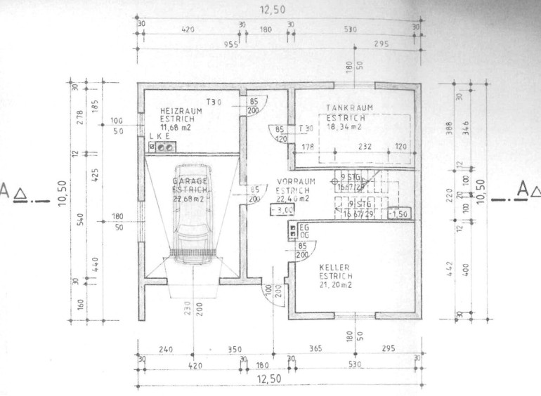 • Kellergeschoss: Vorraum, Kellerraum, Tankraum, Heizraum, Garage – mit deutlicher Schimmelbildung und Feuchtigkeitsschäden.
