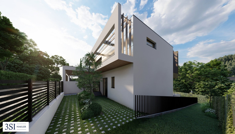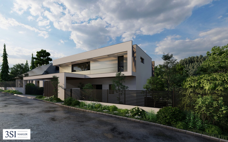 Die Villa überzeugt durch klare Linien und eine hochwertige Bauweise, die Eleganz und Beständigkeit verbindet. Der repräsentative Vorgarten, moderne Pflanzbeete und zwei Autoabstellplätze bilden den stilvollen Auftakt zu dieser besonderen Residenz.