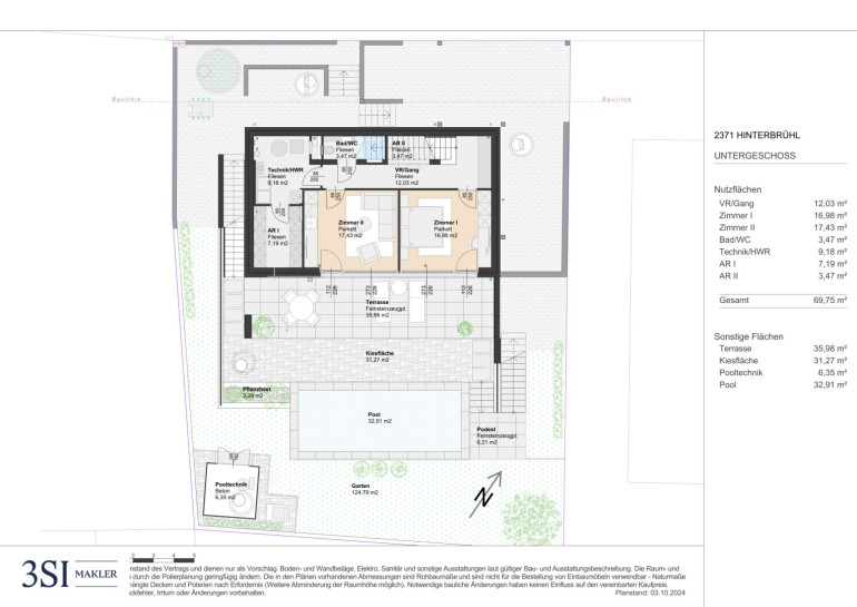 Der guten Ordnung halber halten wir fest, dass, sofern im Angebot nicht anders vermerkt, bei erfolgreichem Abschlussfall eine Provision anfällt, die den in der Immobilienmaklerverordnung BGBI. 262 und 297/1996 festgelegten Sätzen entspricht - das sind 3% des Kaufpreises zzgl. 20% MwSt. bzw. 2 Bruttomonatsmieten zzgl. 20% MwSt. Diese Provisionspflicht besteht auch dann, wenn Sie die Ihnen überlassenen Informationen an Dritte weitergeben. Die Vertragserrichtung und Treuhandabwicklung ist gebunden an eine noch zu nennende Kanzlei.