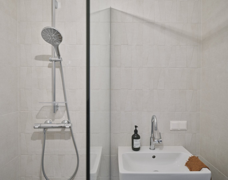 - elegante Marazzi-Designfliesen und Villeroy Boch Keramik in den Sanitärräumen