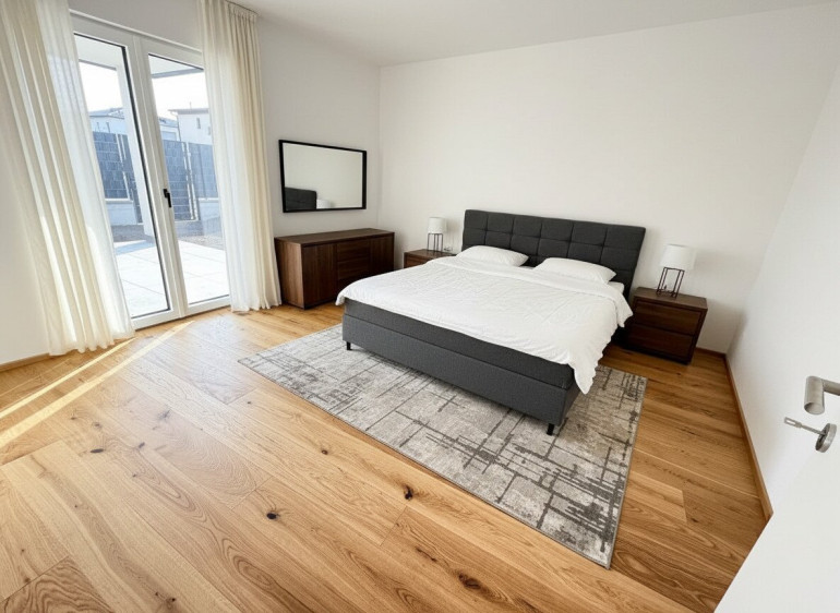 Alle Wohnungen bieten neben dem offenen Wohn-Esszimmer mit intergirierter Küche 2-3 Schlafzimmer und großzügige Terrassen mit 16 - 58 m². Die Erdgeschosswohnungen verfügen zusätzlich über eigene Gärten. So entsteht viel Raum für Ruhe, Erholung und Lebensqualität – drinnen wie draußen. Alle Wohnungen und Nebenräume sind stufenlos im Erdgeschoss bzw. mit dem Lift erreichbar. In der Gesamtmiete inkludiert sind bei jeder Wohnung 2 Parkplätze.