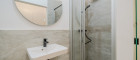 Modernes Badezimmer mit WC, Dusche und Waschtisch