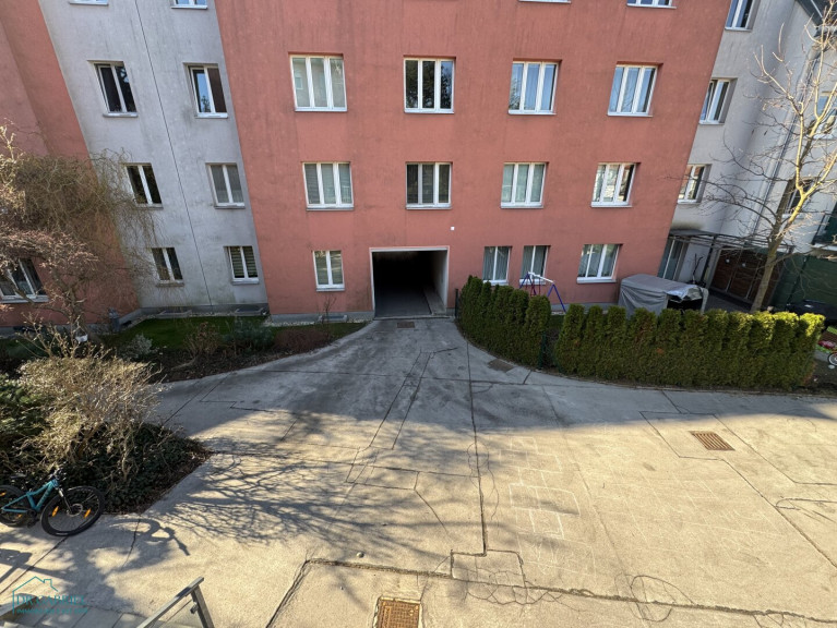 Sie liegt im obersten Liftstock eines 1957 errichteten und 2008 sanierten Hauses. Eine große Gemeinschaftsterrasse befindet sich im Innenhof, die angrenzende Grünfläche darf ebenso genützt werden.