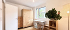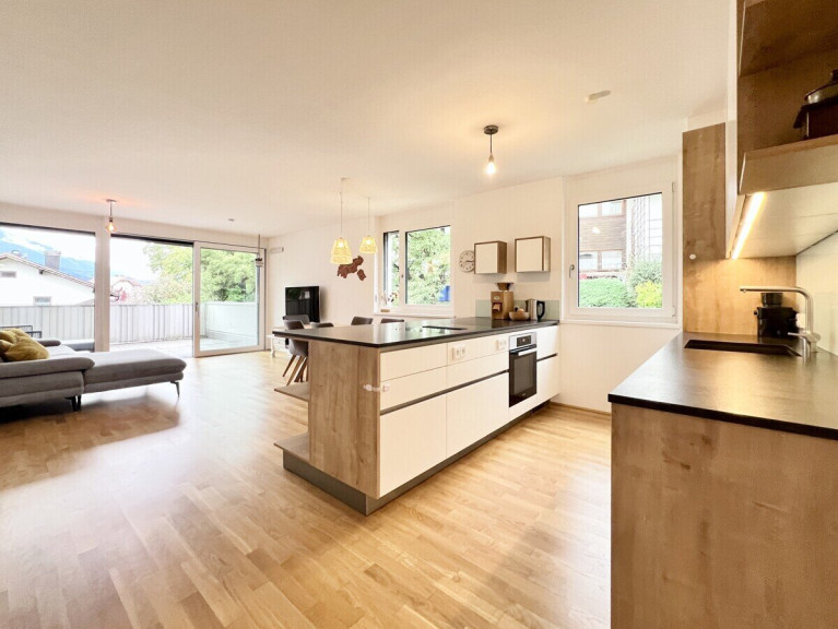 Besonders hervorzuheben sind die edlen Bodenbeläge, die moderne Einbauküche mit praktischer Speisekammer sowie ein stilvoll gestaltetes Bad mit separatem WC. Zwei ruhige Schlafzimmer bieten vielseitige Nutzungsmöglichkeiten.